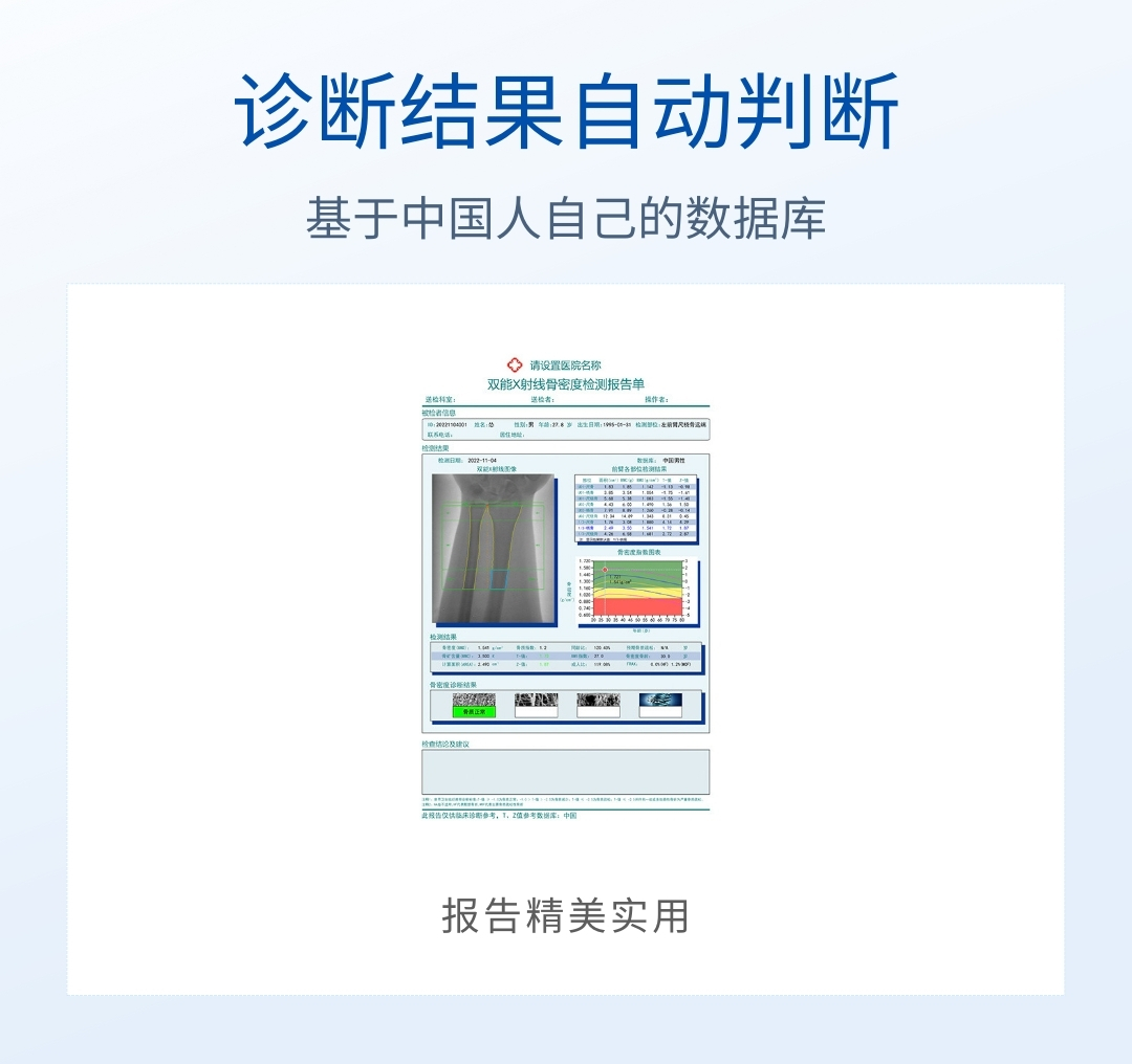 產(chǎn)品用途:本儀器應(yīng)用廣泛,適用于骨科醫(yī)院、康復(fù)醫(yī)院、體檢中心、保健中心、老年病醫(yī)院、療養(yǎng)院、大型社區(qū)醫(yī)院,綜合醫(yī)院的內(nèi)分泌科、骨科、骨質(zhì)疏松科、老年病科、體檢科,康復(fù)科等。