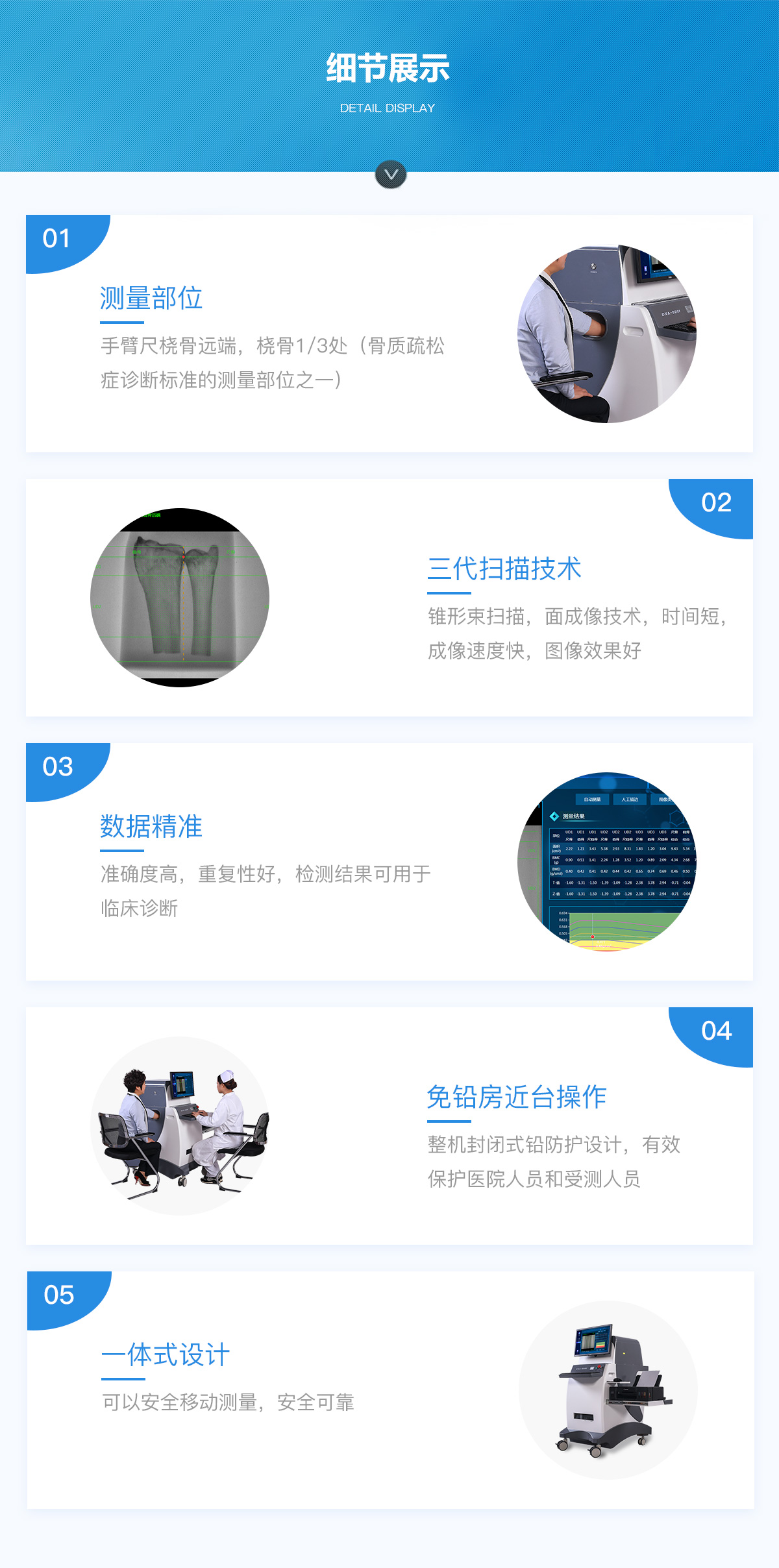 DXA- 800F 雙能X線骨密度檢測儀測量骨密度,準確度較高,重復(fù)性較好,是醫(yī)生臨床診斷好幫手。
